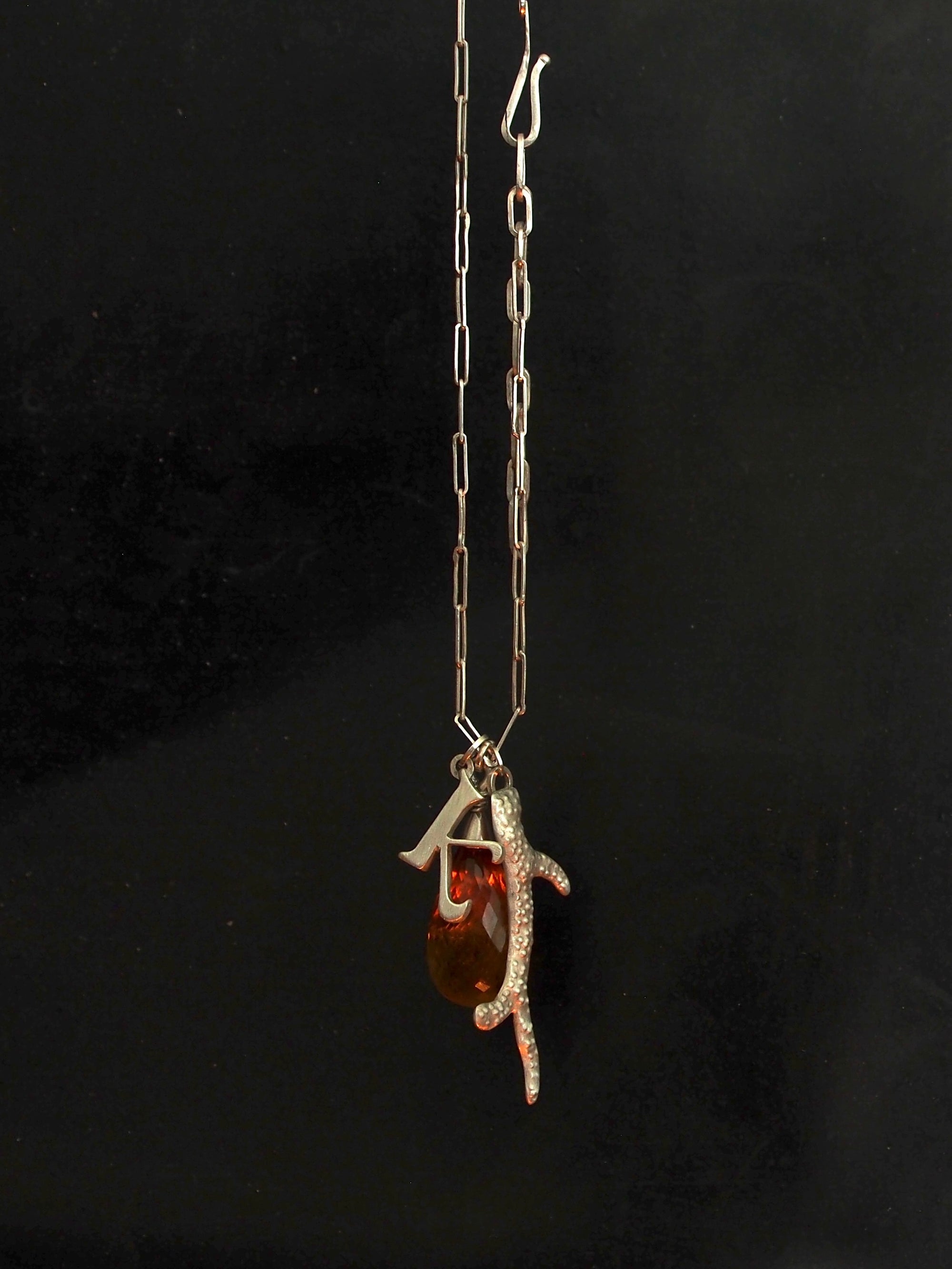 Rooted in the tradition of the charm necklace, each piece is made using time-honoured techniques. Repoussé coral charms evoke life-force energy, while Celtic-inspired initials are individually hand-formed, ensuring no two are alike. Citrine, gold, and silver bring warmth, light, and balance.