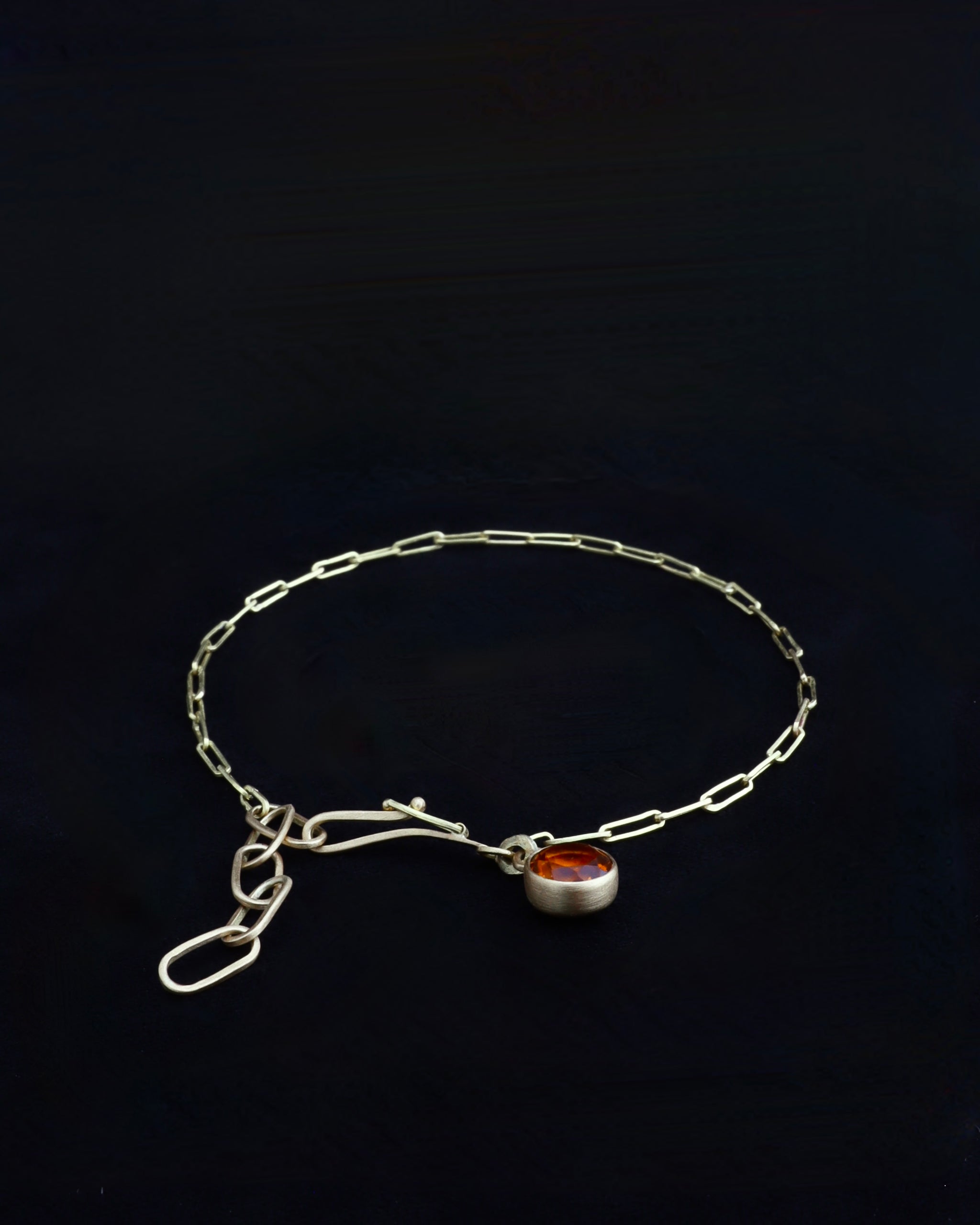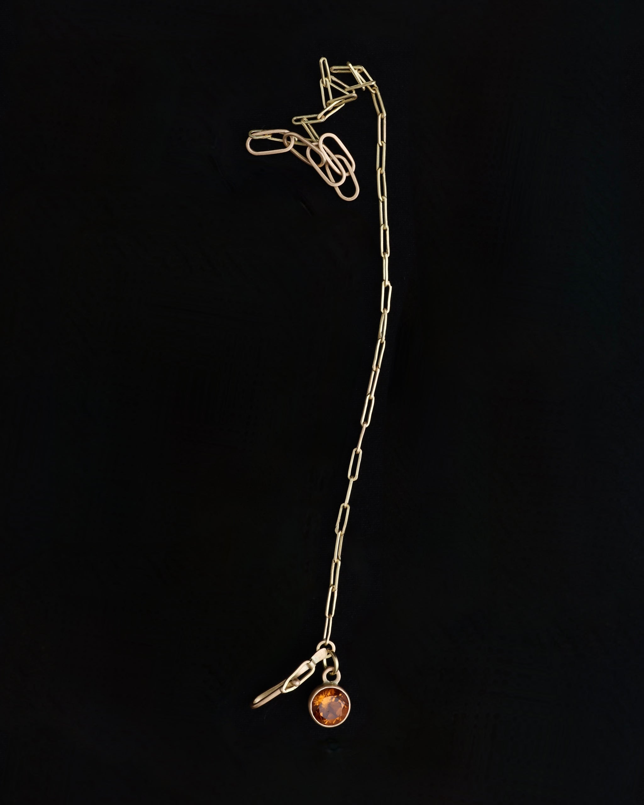 Handcrafted in 18ct gold with a brilliant-cut Madeira citrine, set in a softly rounded bezel. This charm hangs from a handmade chain that gives the piece a subtle, distinctive character. Each piece is made by hand in my London studio.