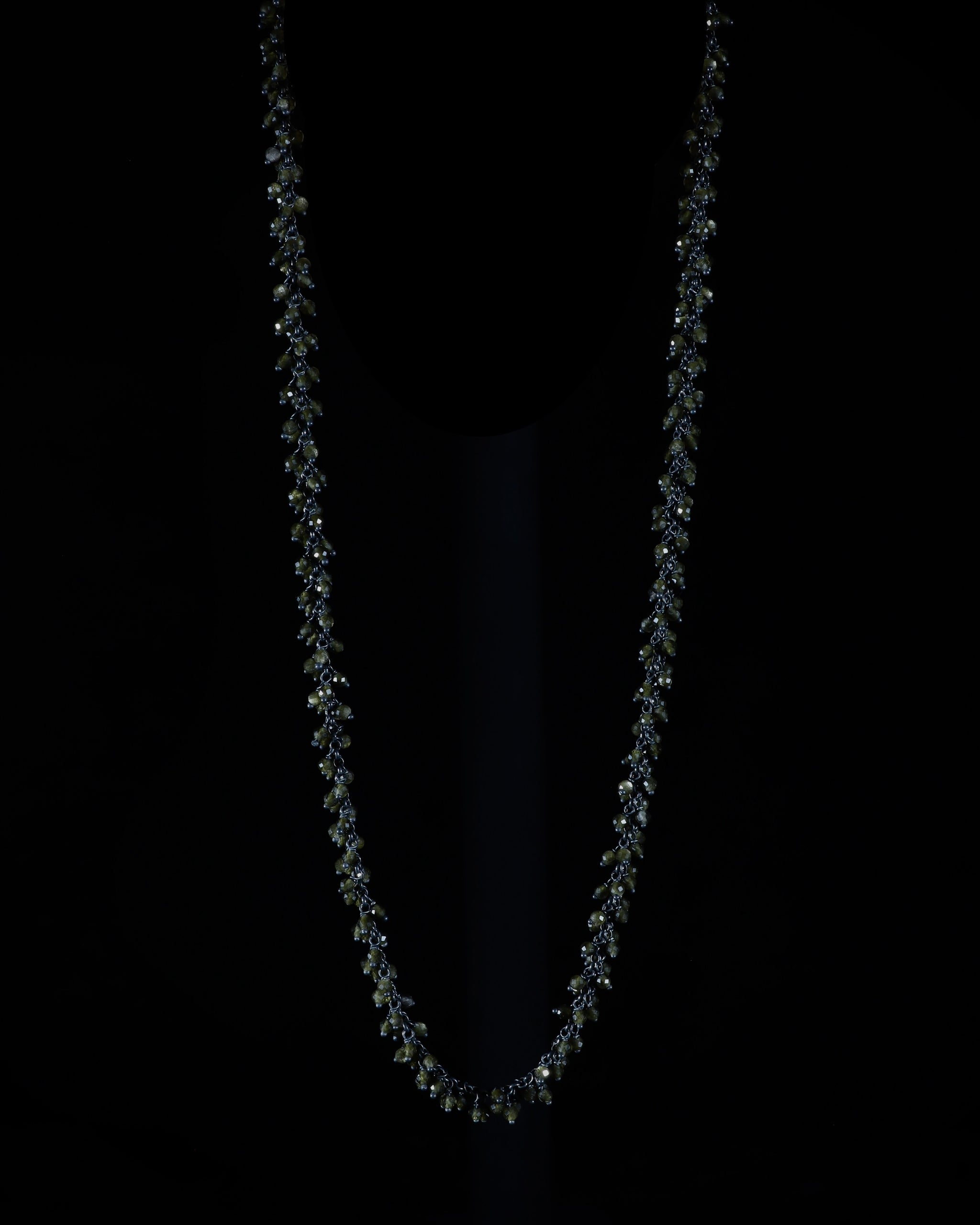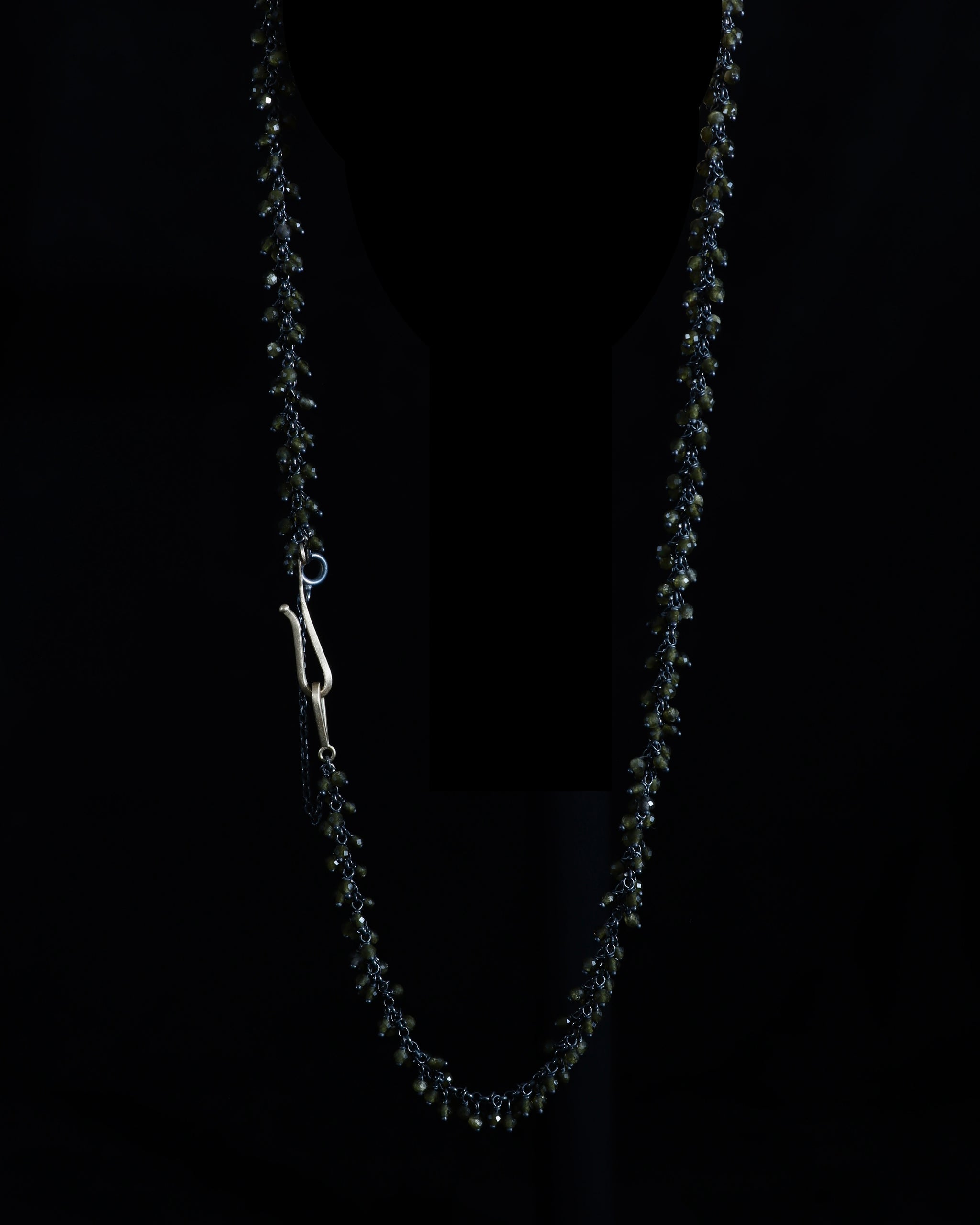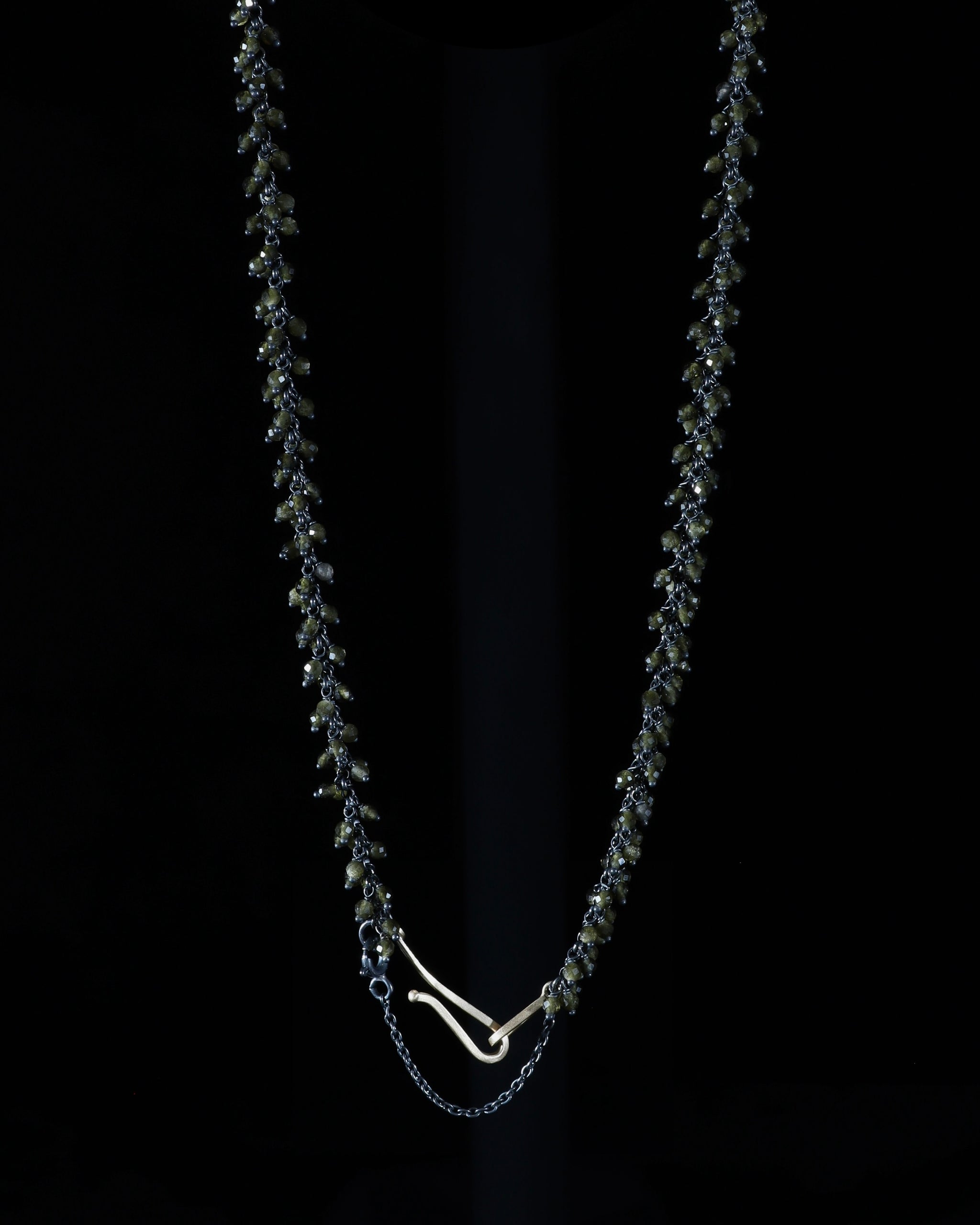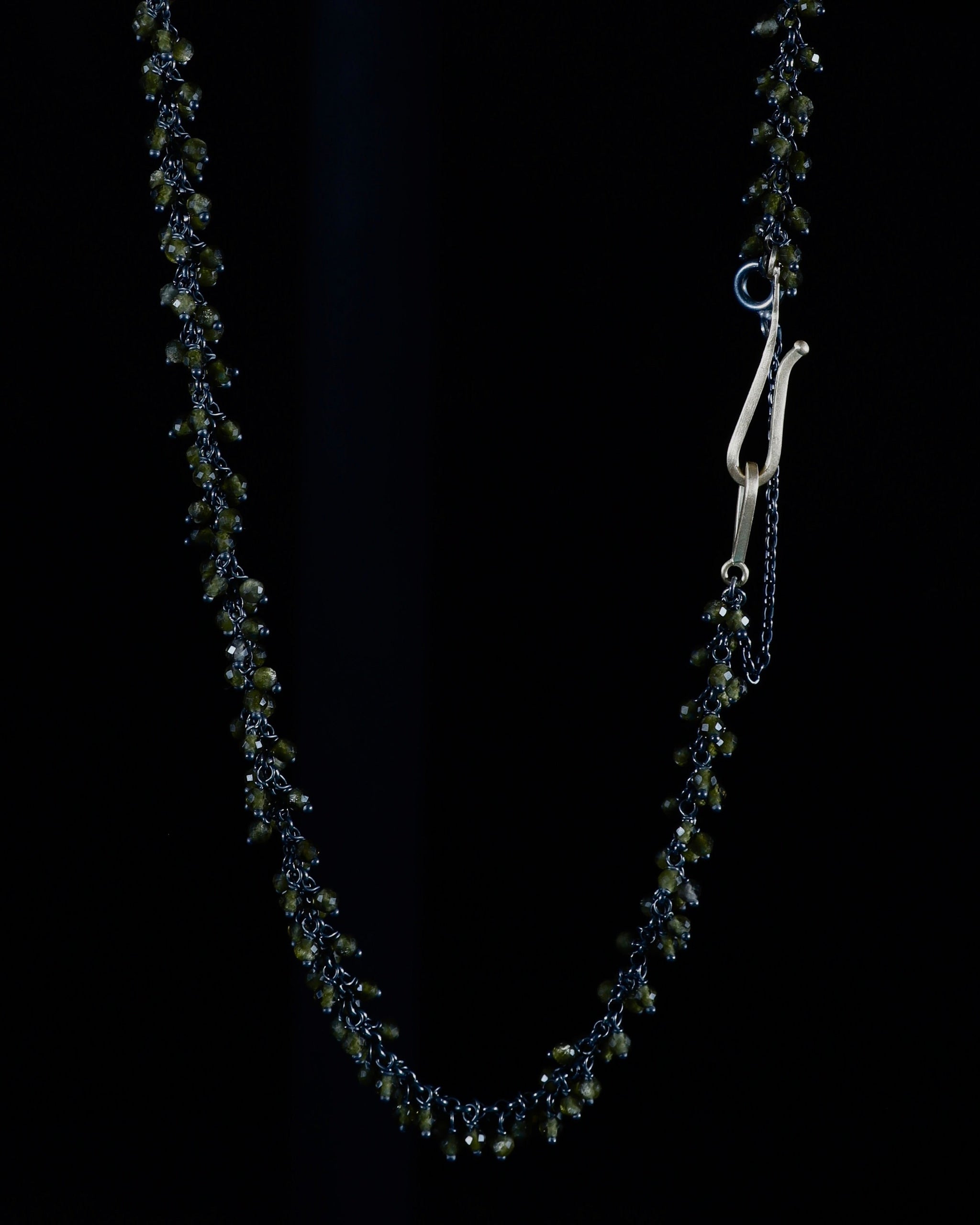 Microfaceted golden obsidian beads are handcrafted with oxidised sterling silver to create a fluid and enticingly sparkly necklace. With the option of a 9ct gold or sterling silver hook and eye clasp, all made by hand in my London studio.