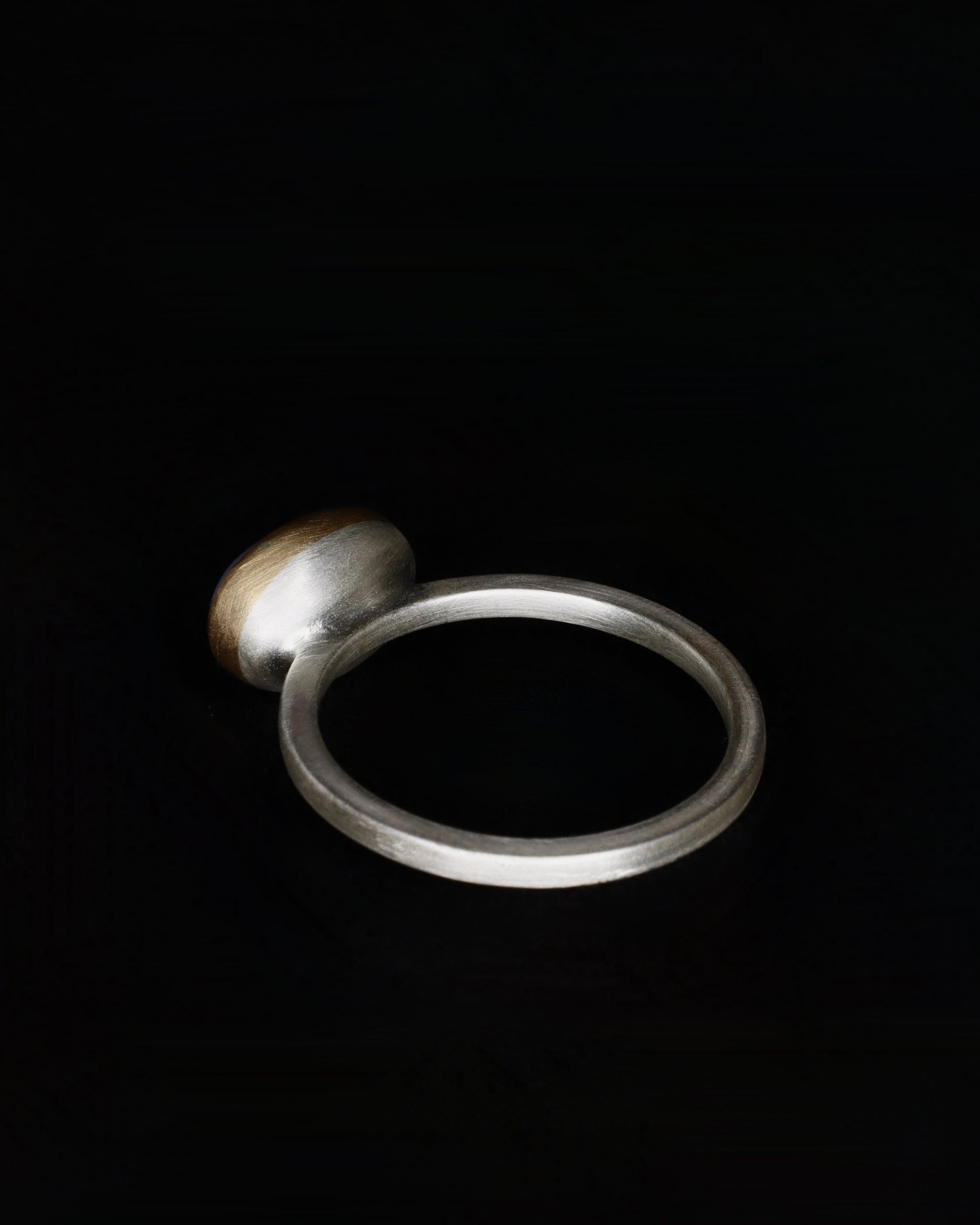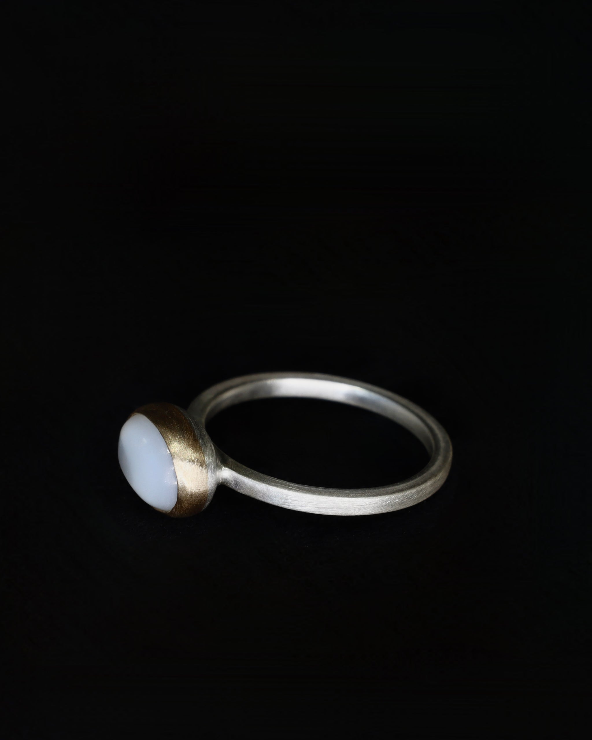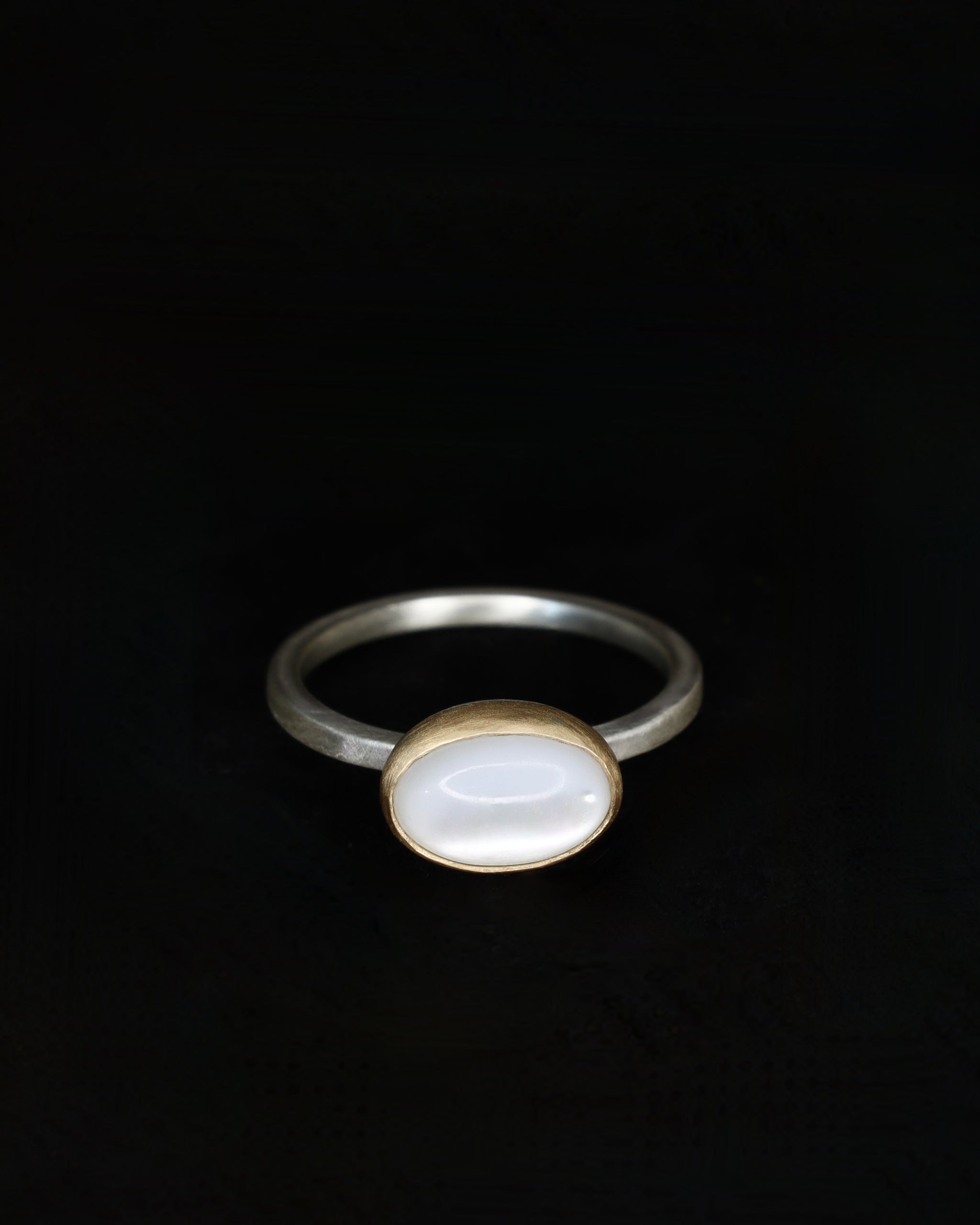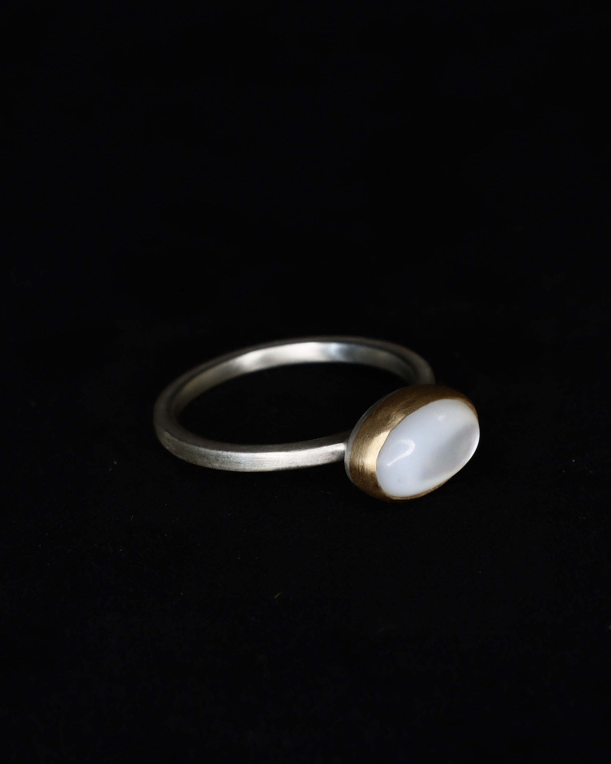 Mother of Pearl seed ring set in 18ct gold and sterling silver all made by hand in my London studio.